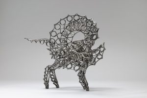 「芸大・茨大・筑波大卒業修了制作選抜展」の出品者から現在活躍中の作家を紹介するシリーズ企画展です。今回は、金属彫刻の造形技法により独自の立体表現を追求している彫刻家、根岸創さん(平成8・10年に芸大から選抜)を紹介します。自然界における有機的な形象の生命力をステンレスや鉄で造形した作品や、重力から解放されたスタイリッシュな作品など35点をギャラリー2フロアに展示します。