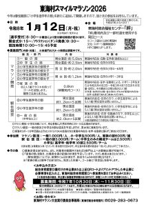 東海村マラソン大会実行委員会事務局(東海村総合体育館内) ☏029-283-0673